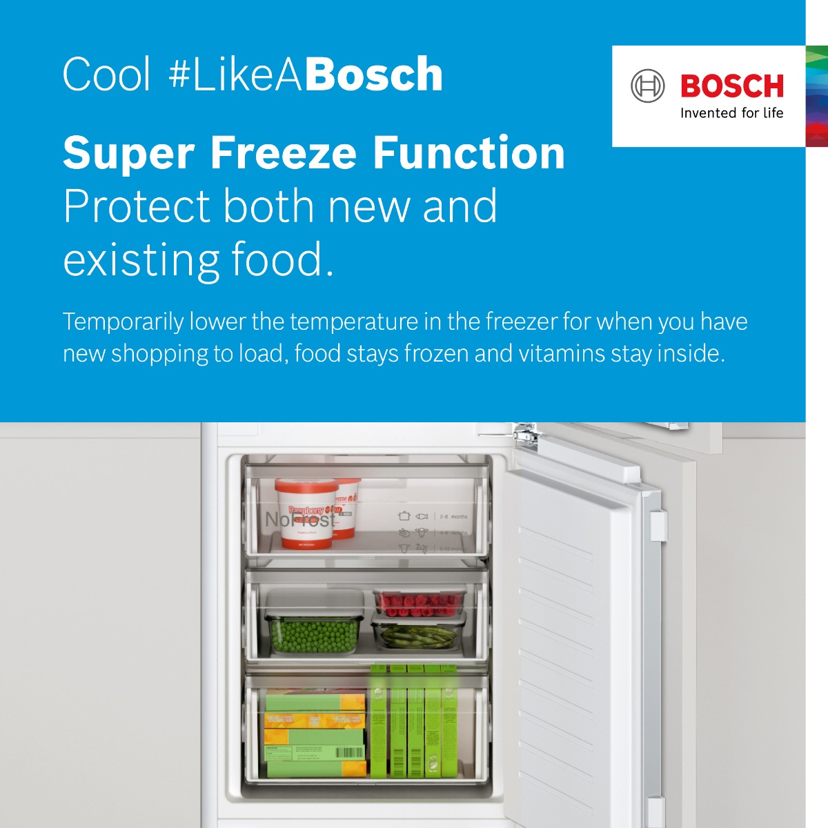 The #LikeABosch cooling range comes with a range of stellar features, ranging from technology to keep your food ripe and fresh to key features in ease of use and accessibility. Learn more about these features and how they can help you here.